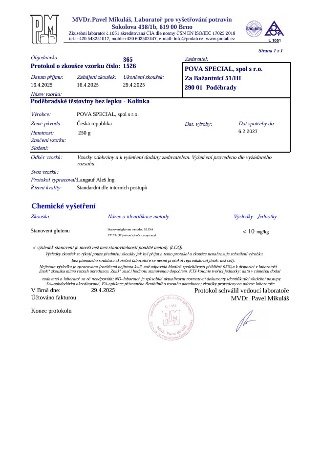 Společnost Pova Special spol. s r.o. byla založena v roce 1997 a od svého vzniku se zaměřuje na výrobu kvalitních bezlepkových a PKU těstovin. Jsme odborníky v oblasti alternativních potravin pro osoby s intolerancí na lepek, stejně jako pro pacienty s fenylketonurií (PKU). Naše produkty jsou navrženy tak, aby splňovaly vysoké nároky na chuť, texturu a výživovou hodnotu, přičemž nezapomínáme na potřeby těch, kteří se musí stravovat podle specifických diet.
